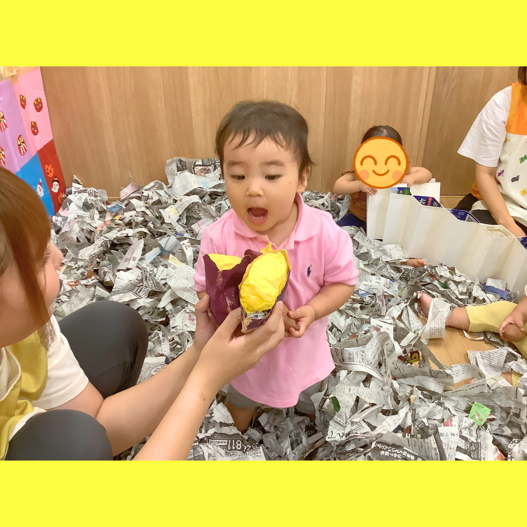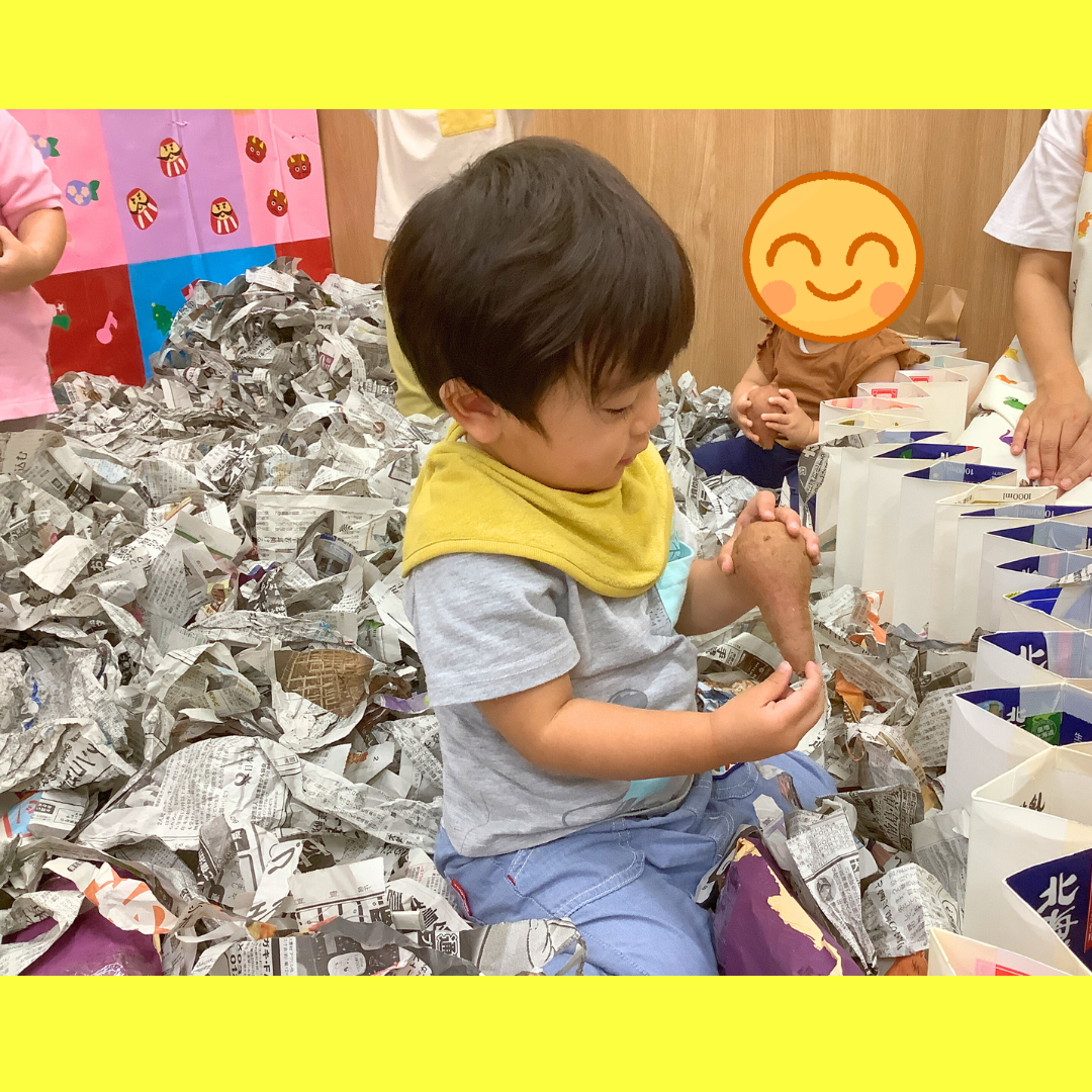 小さいお友だちはさつまいもに興味津々で触っていました。