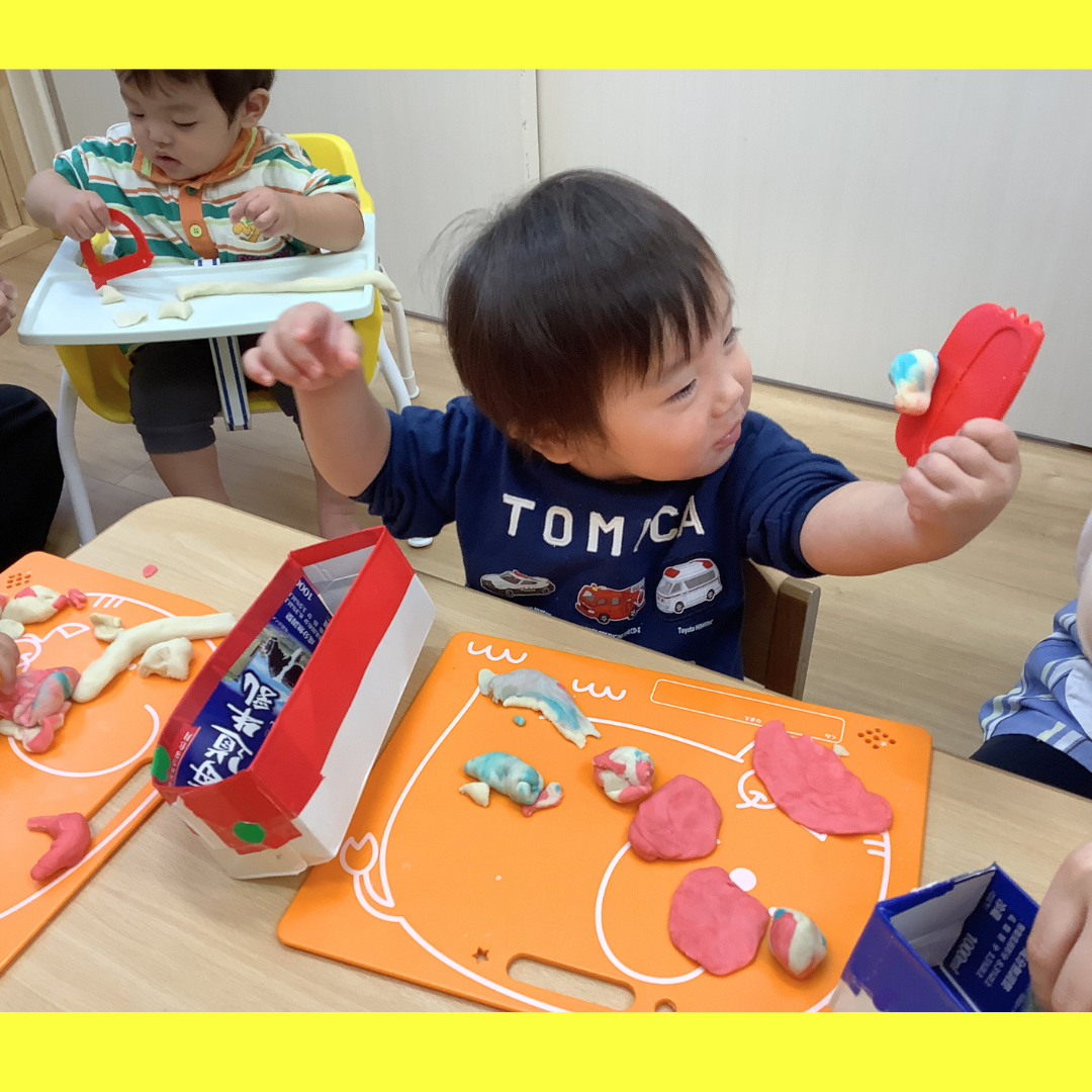 ふわふわしていて、普通の粘土を触らなかったお友だちもしっかり触って遊べました。