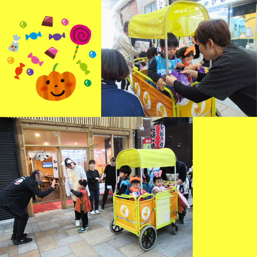 ハロウィンのかわいい衣装を着てぶらくり丁へお散歩に行きました。