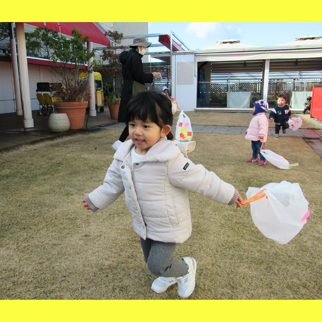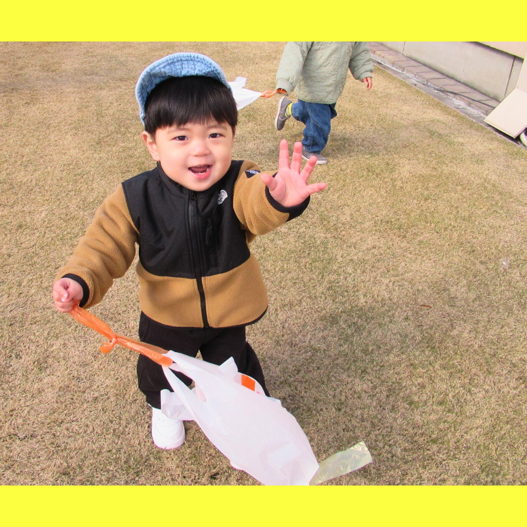 自分たちで貼って作ったたこを持って、フォルテワジマ屋上に走りに行ってきました!!