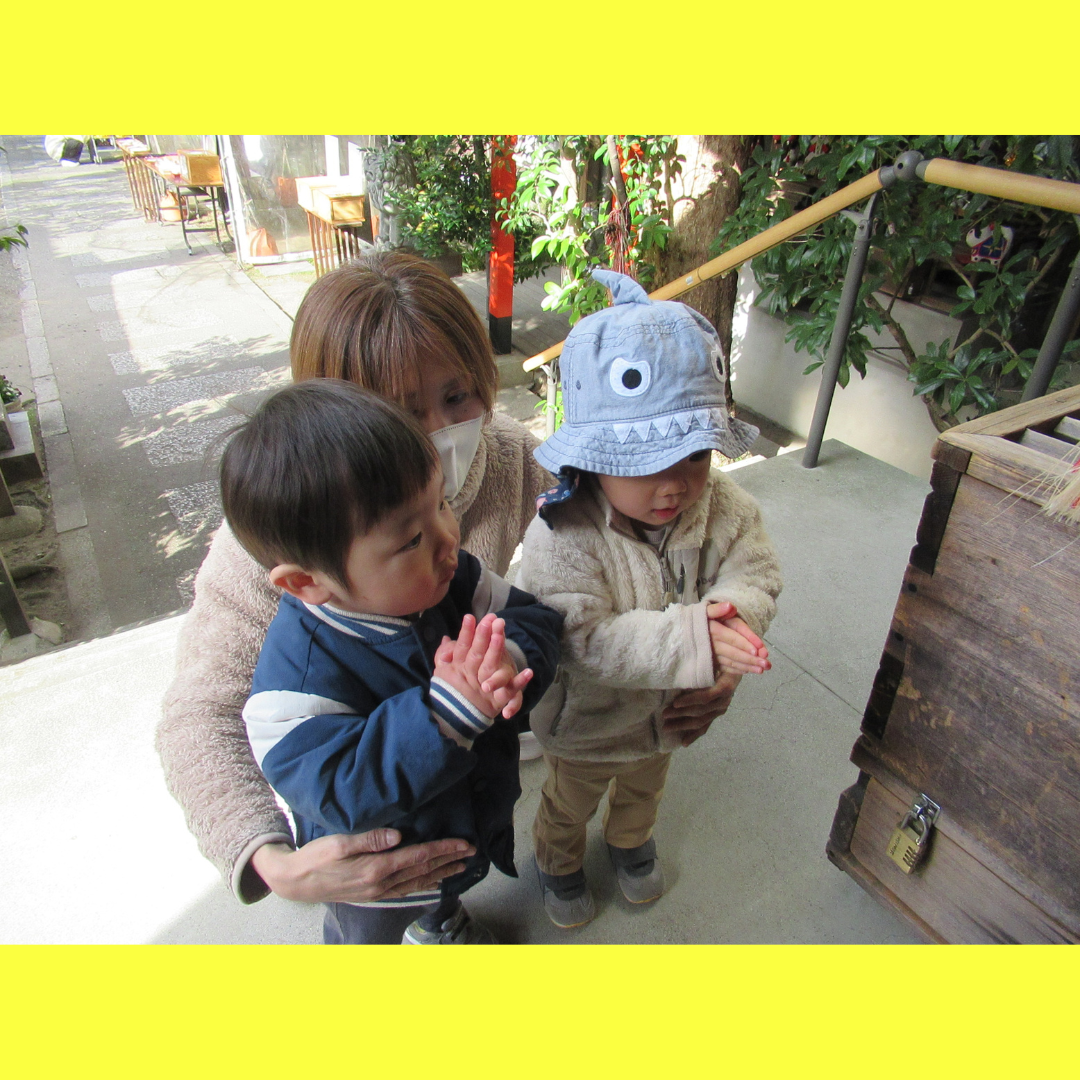 初詣は、近くの多賀神社へ。みんなでしっかりお参りできました。