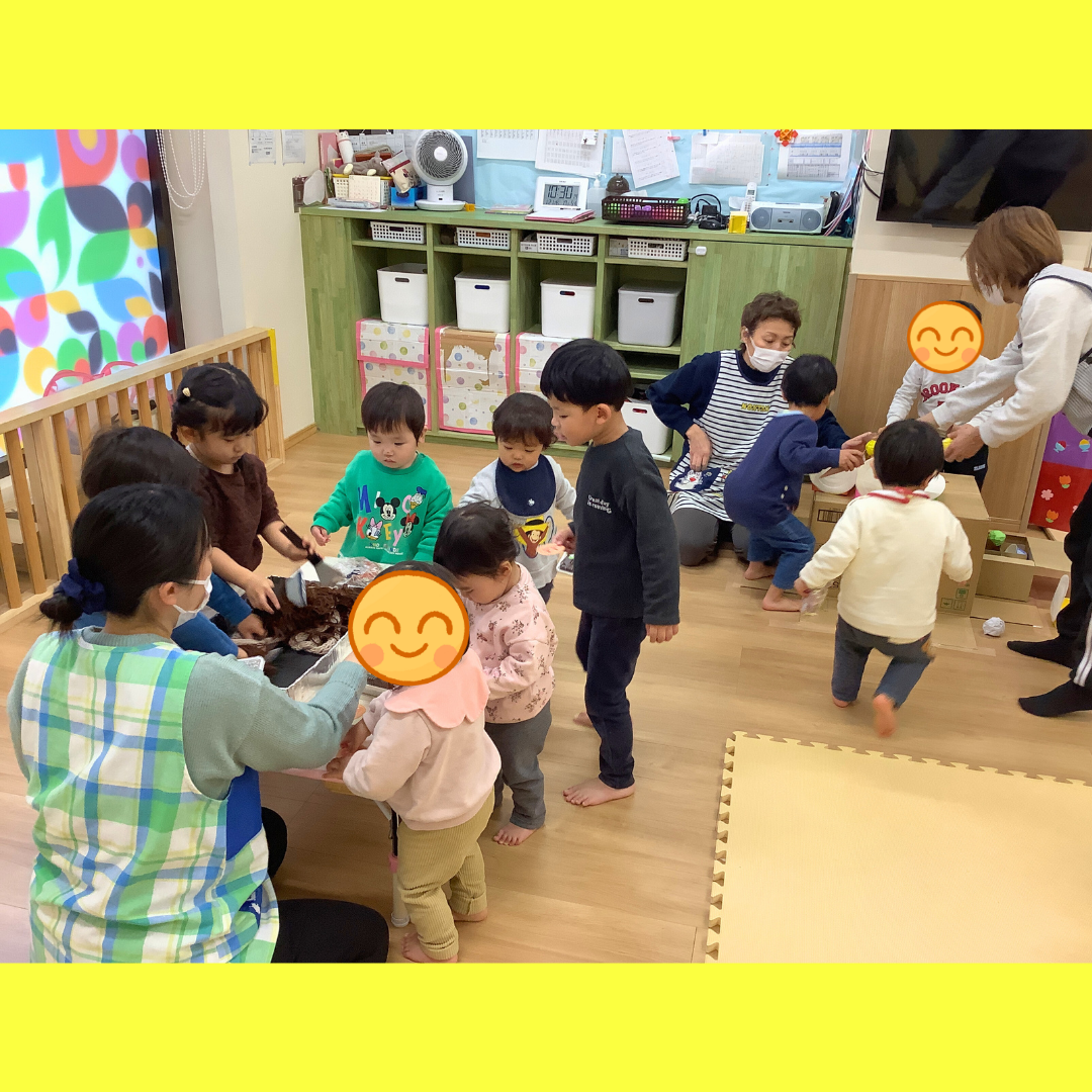お店屋さんごっこをしました。アンパンマンのカードと交換しながら色々なお店で買い物を楽しんでいました。